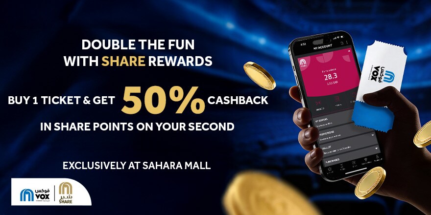 Buy 1 movie ticket and get 50% cashback in SHARE Points on your second ticket.