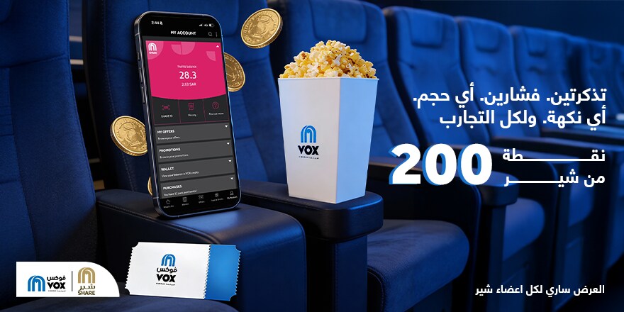 - تأكد من التسجيل في برنامج شير كخطوة أولى: https://ksa.voxcinemas.com/account/dashboard/