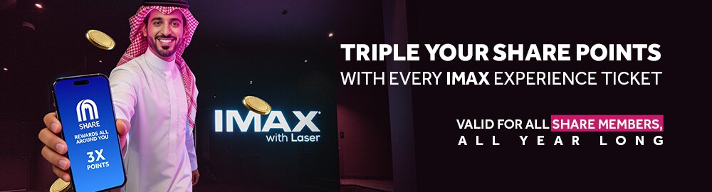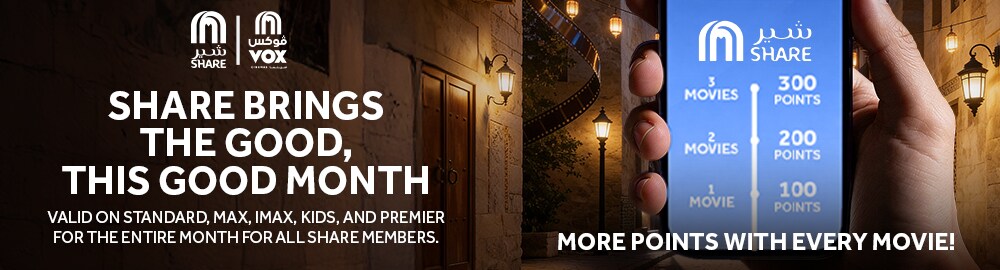 - Share Double Points Offer - Get double the SHARE points with your first purchase at VOX Cinemas.